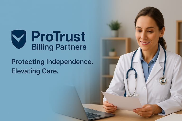 ProTrust Billing Partners exists to help Primary Care practices thrive — not just survive — in a healthcare landscape increasingly dominated by consolidation. We stand with clinicians who choose autonomy over assimilation, patient relationships over corporate quotas, and community care over corporate metrics.